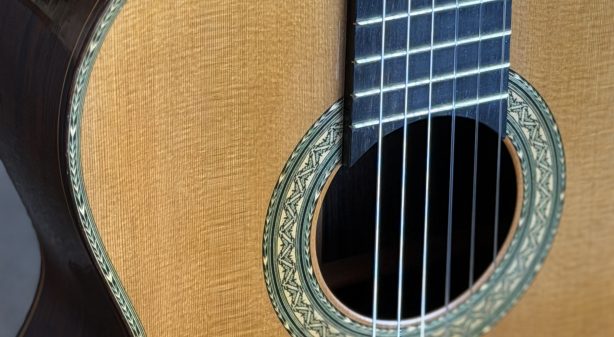 This guitar built in 2022 is fashioned after an Antonio Torres 1864 Modelo 17A. The workmanship and aesthetic details are really lovely. With a smaller body and 630mm scale length it is very easy to play and has a distinct ...